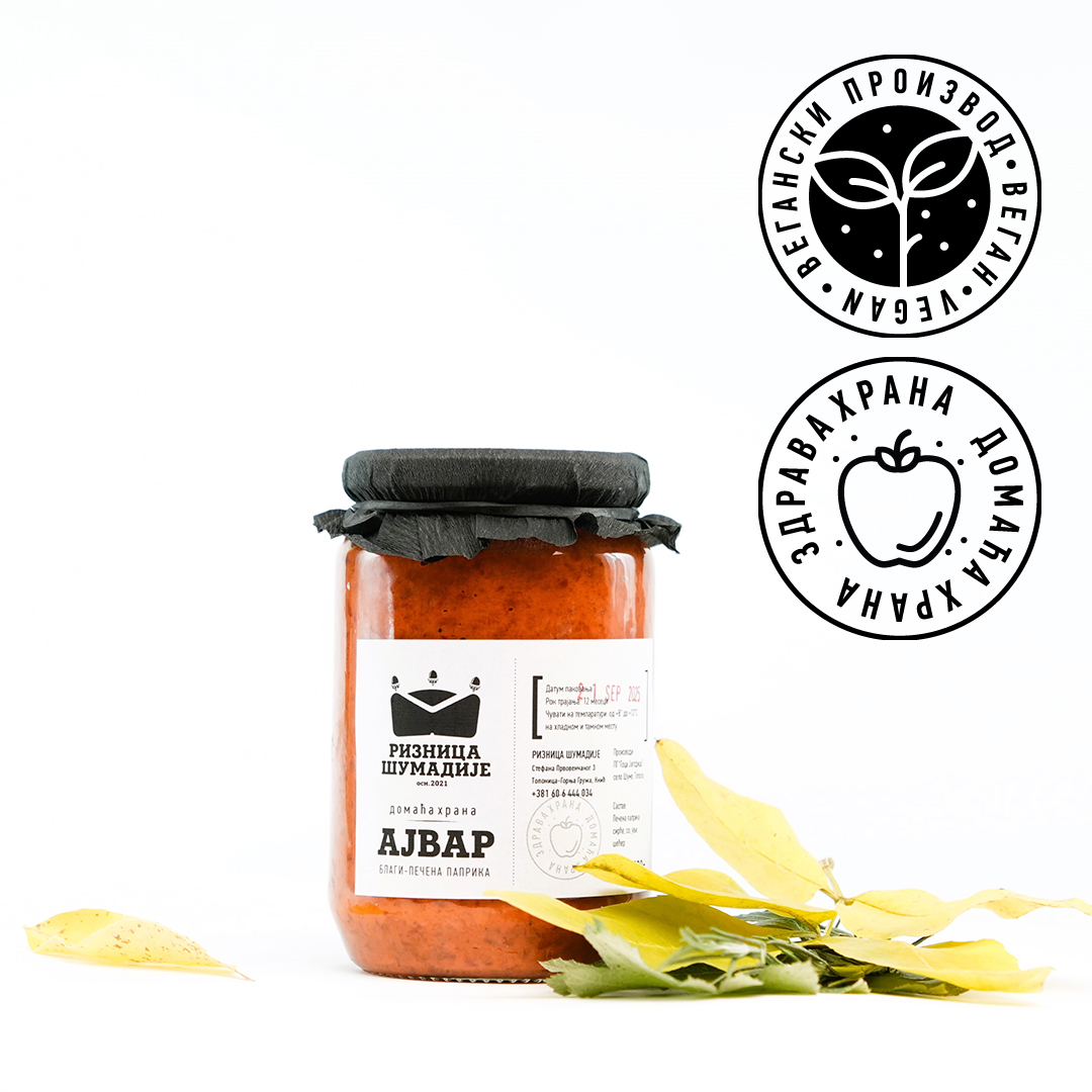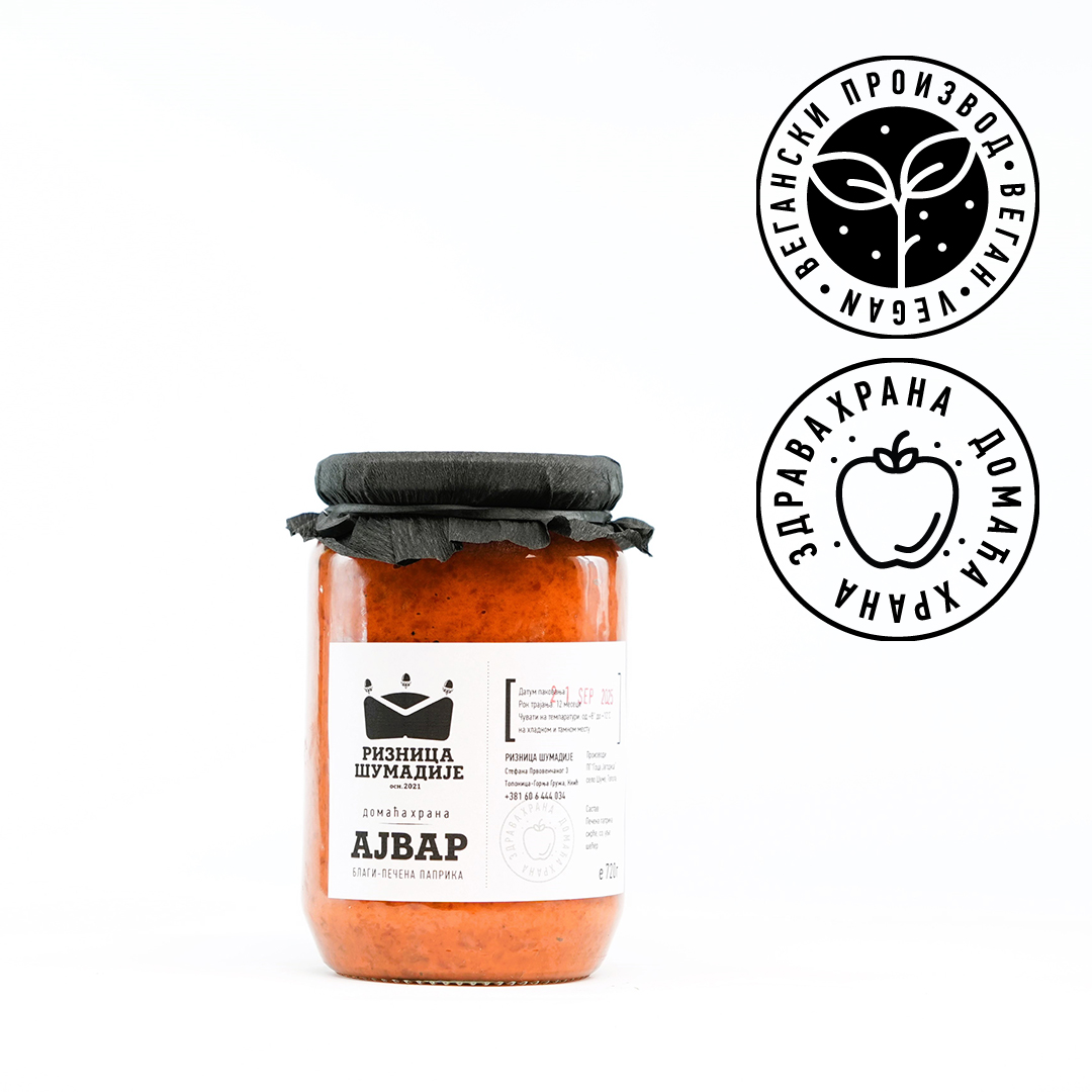 Домаћи благи ајвар, изузетне кремасте структуре од печене паприке ајваруше на уљу. Домаћи „кавијар" како га често називају један је од омиљенијих специјалитета у Србији а богами и шире. За најбољи ајвар потребни су познати традиционални састојци и доста стрпљења. Прави ајвар се прави од печених паприка уз додатак уља, соли и мало шећера. За добар ајвар потребне су пажљиво одабране црвене слатке паприке, дугуљасте правилног облика зрело црвене боје и са што мање воде у плоду. Најгушћи и најслађи ајвар се добија од таквих паприка.