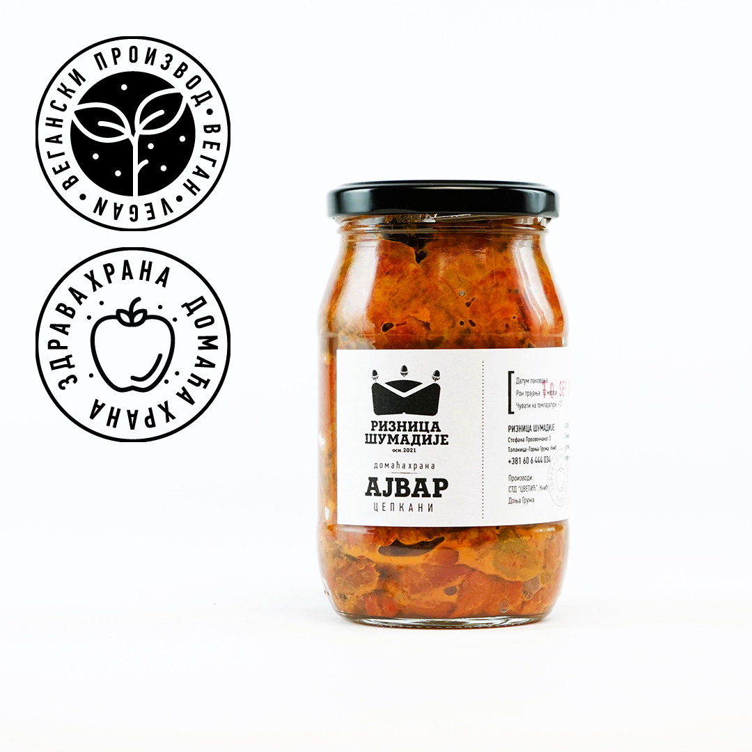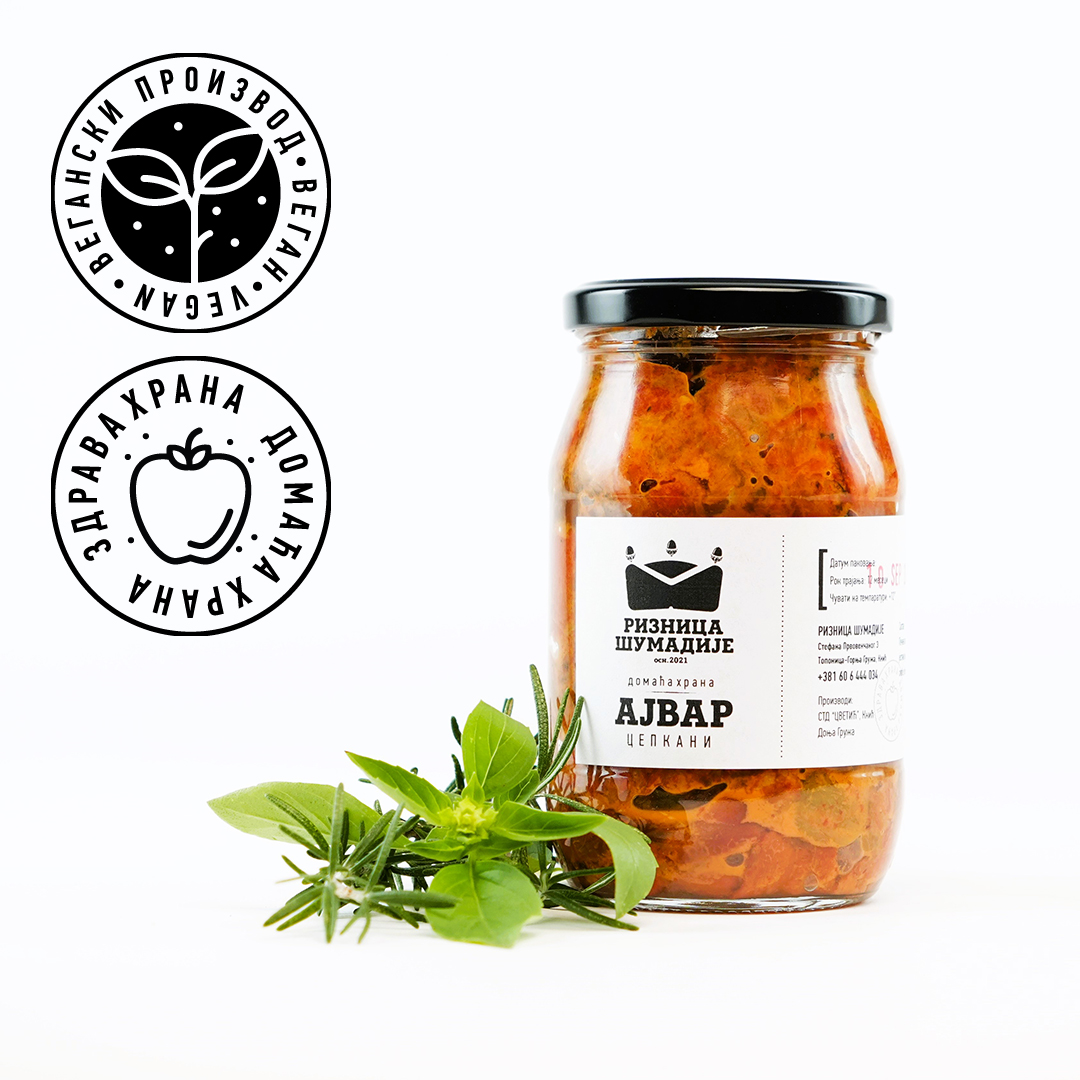 Цепкани домаћи ајвар од печене паприке са белим луком.