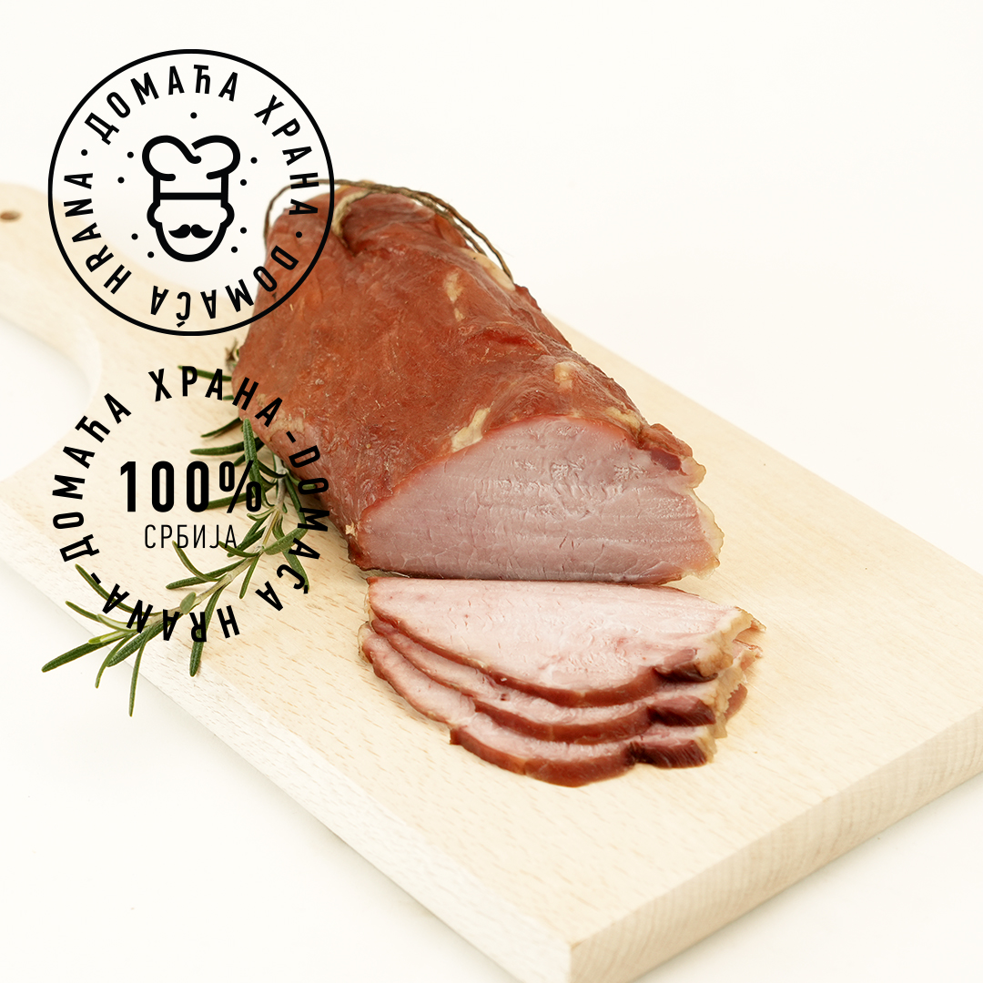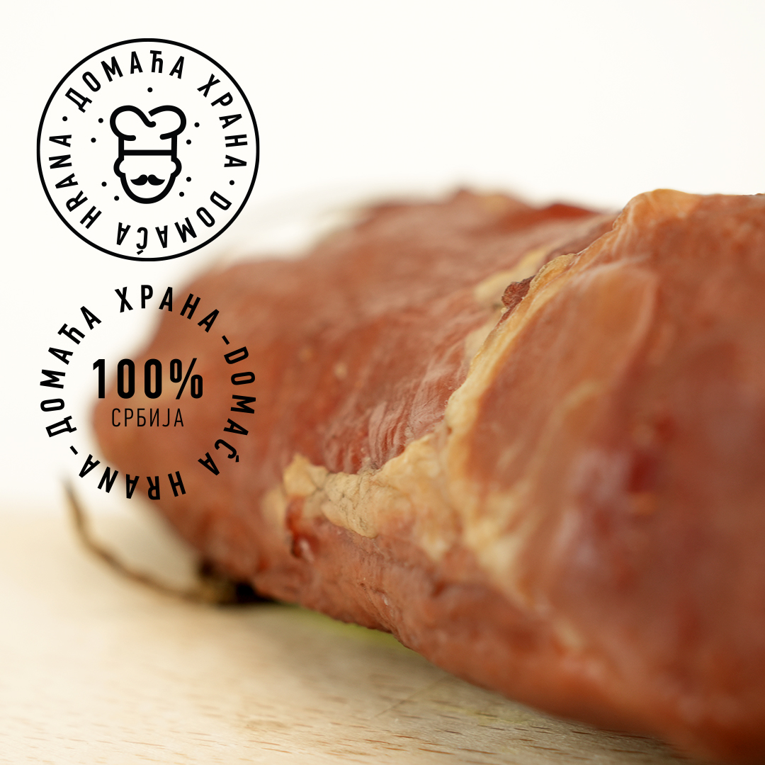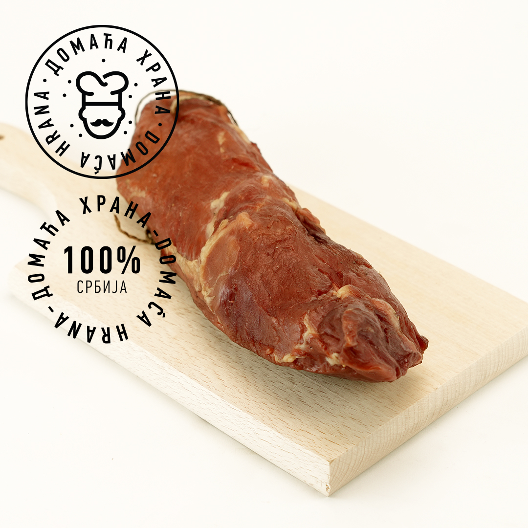 Домаће суво месо, сушено и димљено на буковини на традиционалан начин. Месо од свиња из слободног узгоја. Шумадијски домаћи производ 100%.