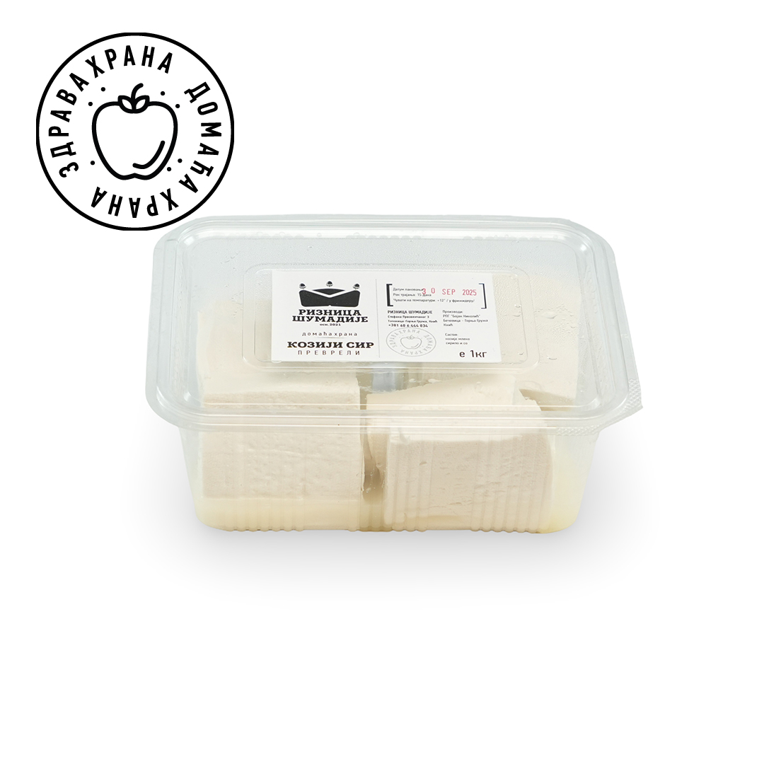 Домаћи преврели козији сир из Бечевице, Горња Гружа подно падина Рудника где су на испаши козе наших домаћина Бојана и Горана. Сир без конзерванса и вештачких додатака је чист добитак за оне који цене здраву и аутентичну домаћу храну, храну без бар кода. Kозији сир је идеалан за лагане оброке и салате, или као додатак уз друга јела.
