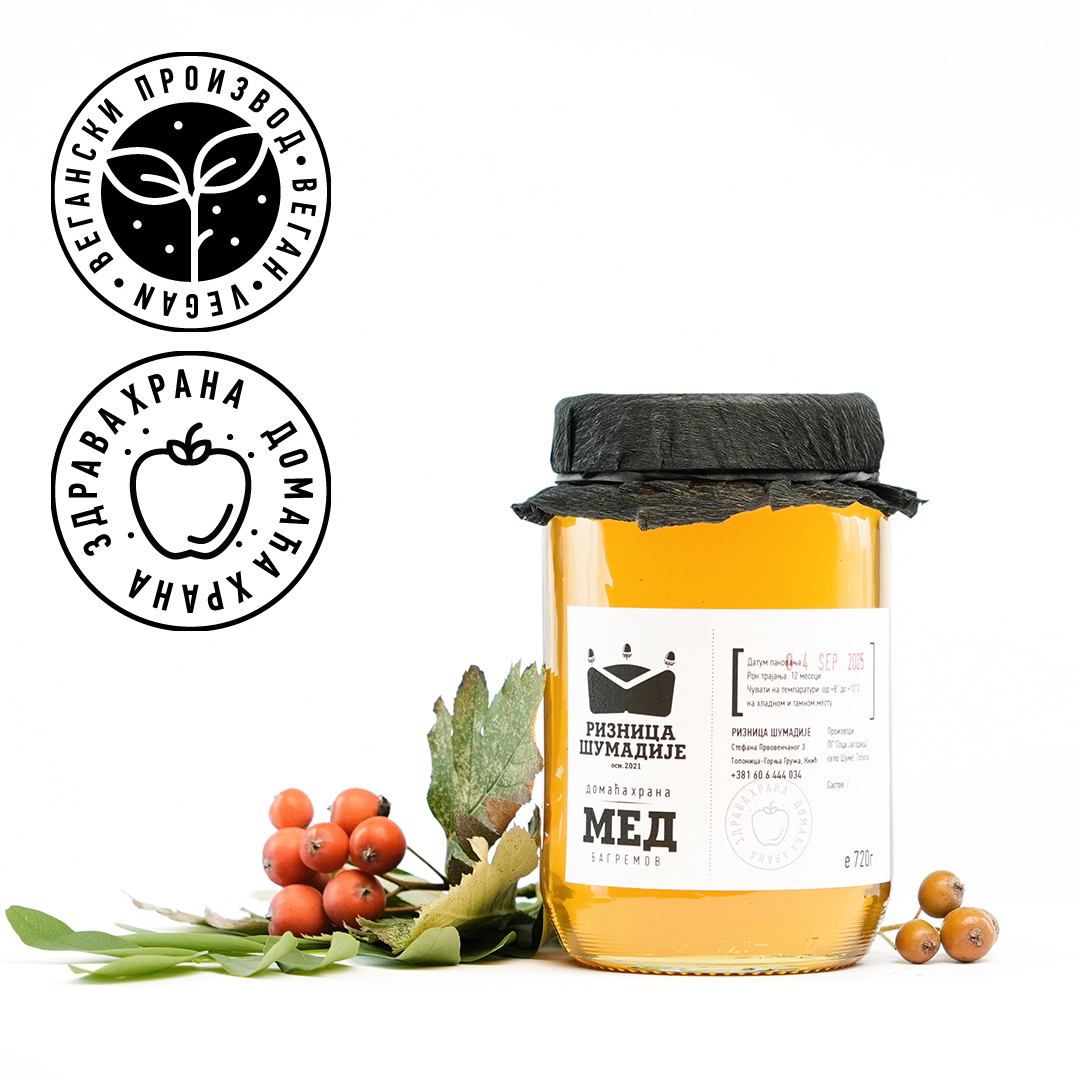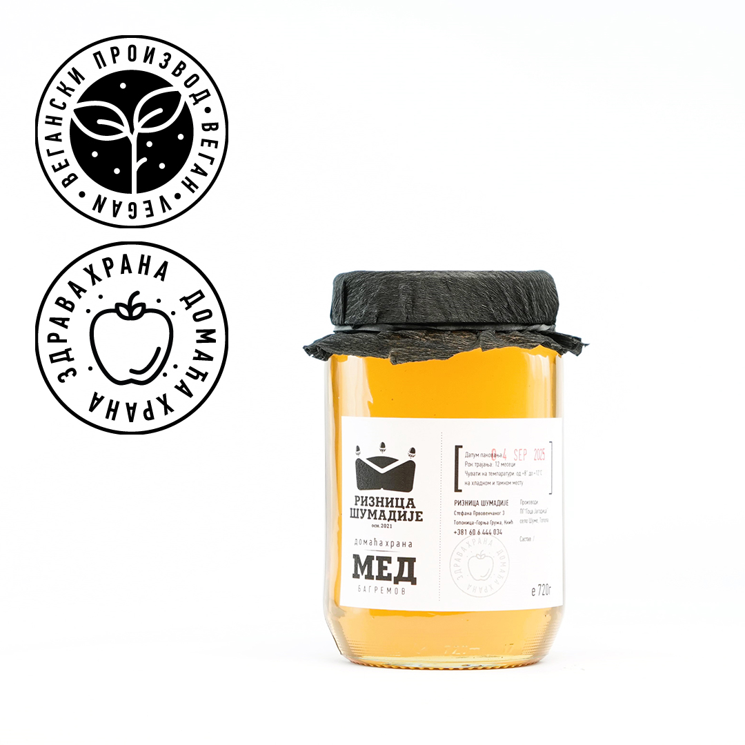 Мед - багремов Кристализација је природно својство правог меда. Чувати на тамном месту на собној темпаратури, идеална темпаратура је од 18 до 24°C. Важно је да се избегне директо излагање сунчевој светлости па се препоручује чување у ормарићима или у шпајзу без извора природне светлости.