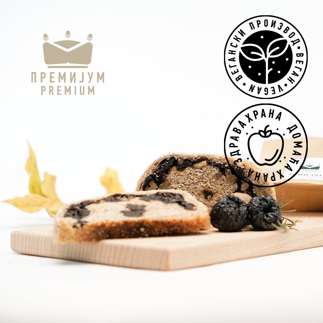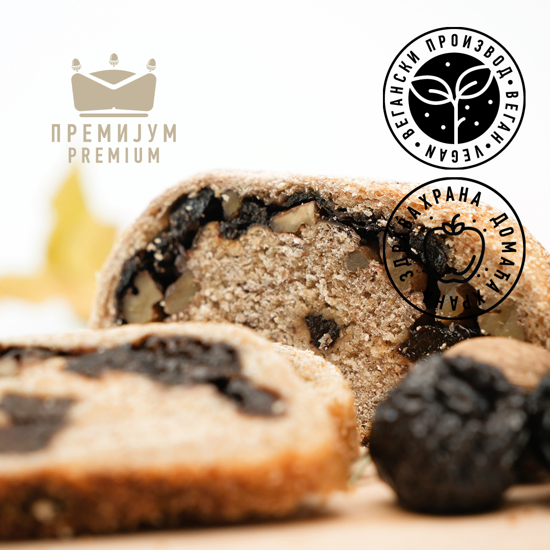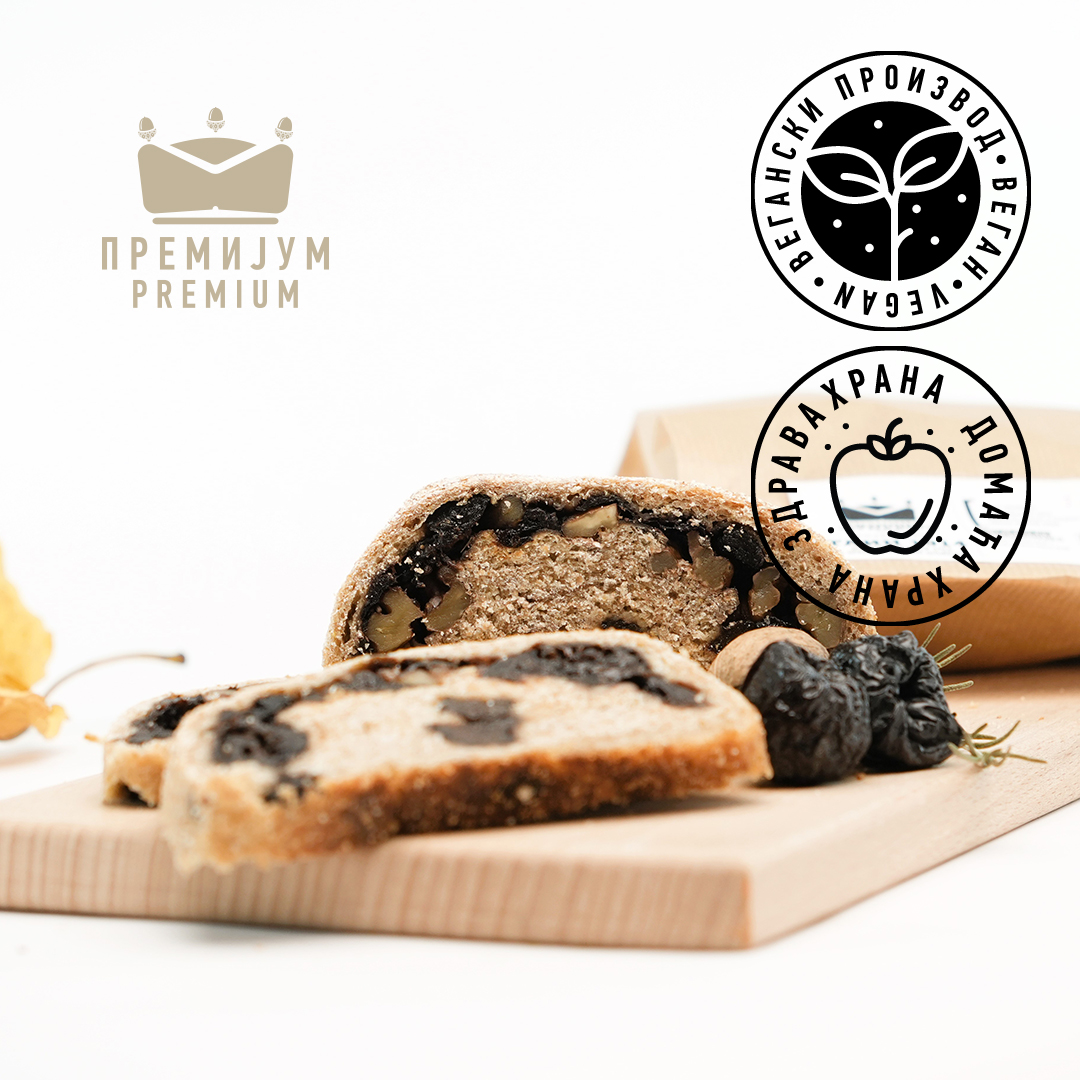 Ражано брашно 70%, спелтино брашно 30%, природни дивљи квасац морска со, мед, суве шљиве, анис, ораси, вода. Може да садржи глутен у траговима од других житарица. Чувати на чистом и сувом месту на темпаратури од +8° do +12°C.