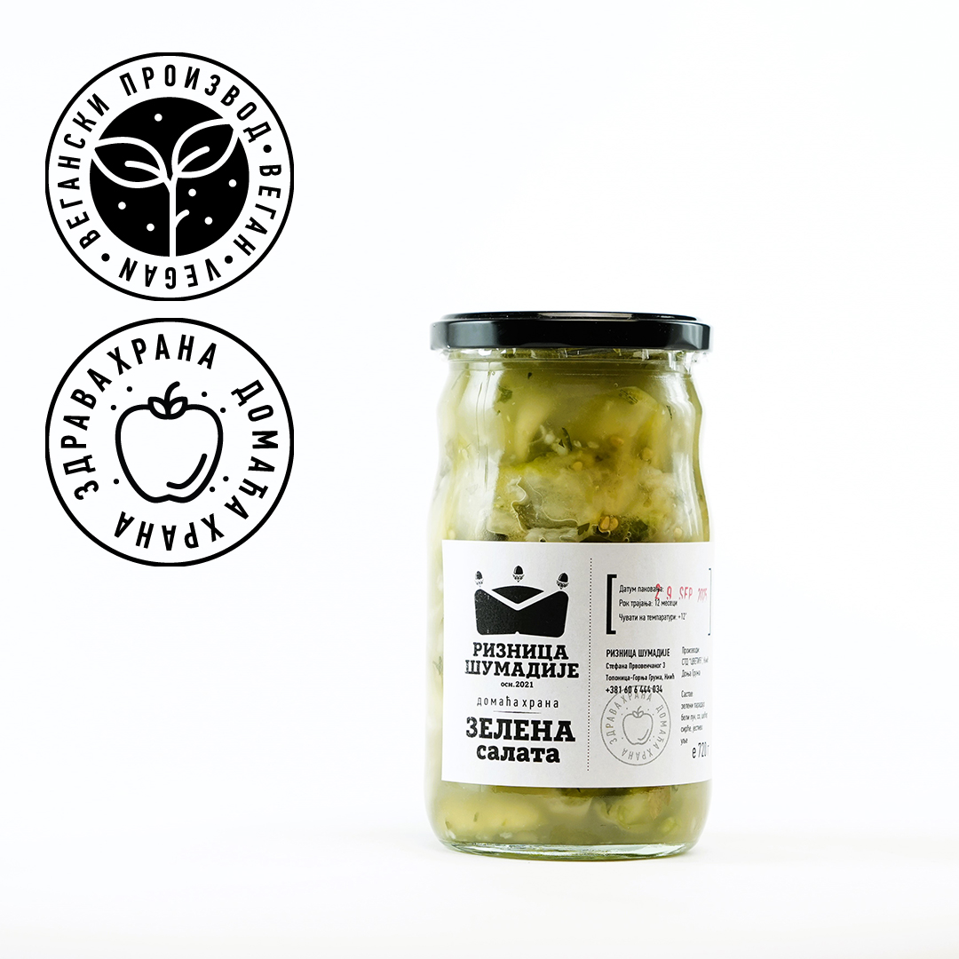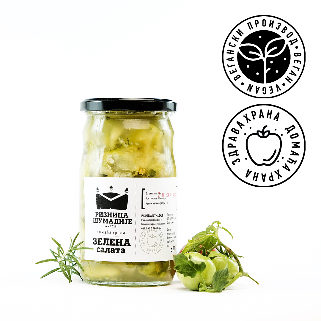Зелени парадајз, бели лук, со, шећер, сирће и уље.